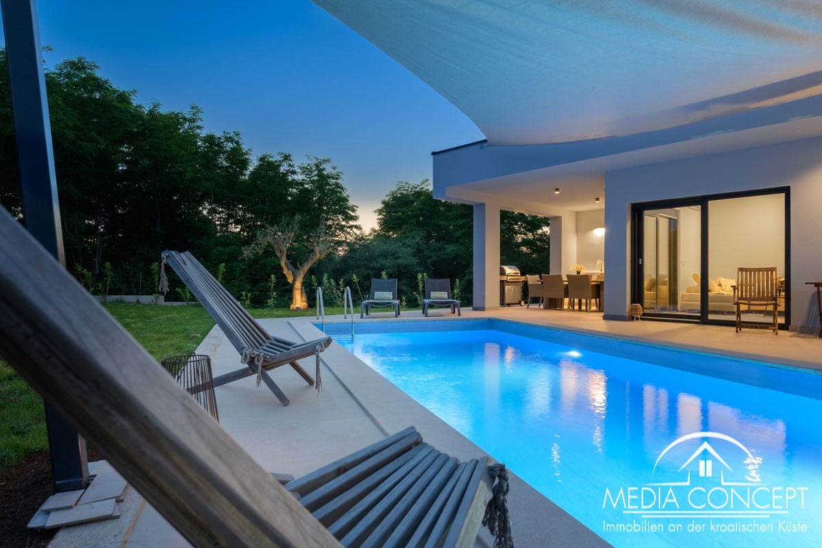 Diese Immobilie stellt ein äußerst attraktives Gesamtpaket dar: perfekt als Familienwohnsitz, luxuriöses Ferienhaus oder hochwertige Investition. Moderne Architektur, natürliche Umgebung, ein Barrieren-freundliches Design und die Nähe zu Rovinj machen dieses Haus zu einer einzigartigen Chance auf dem heutigen Markt.