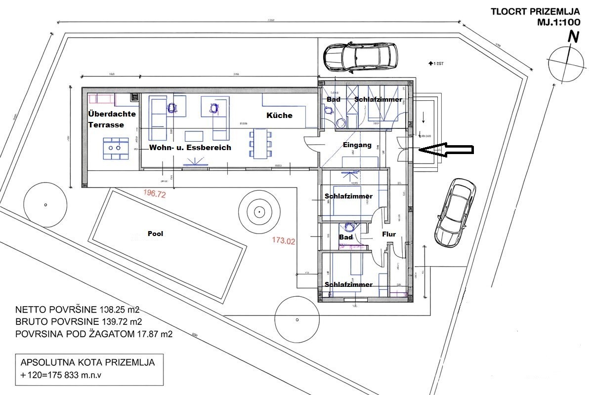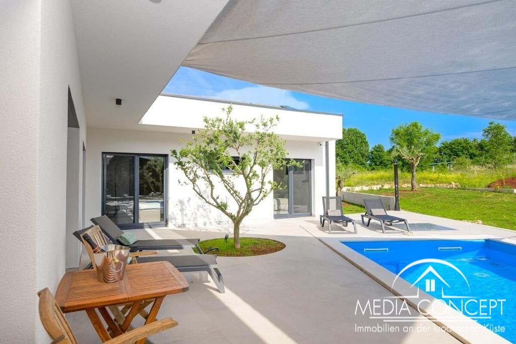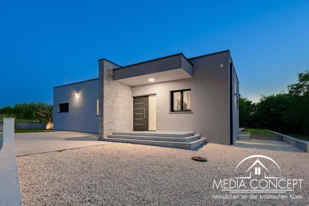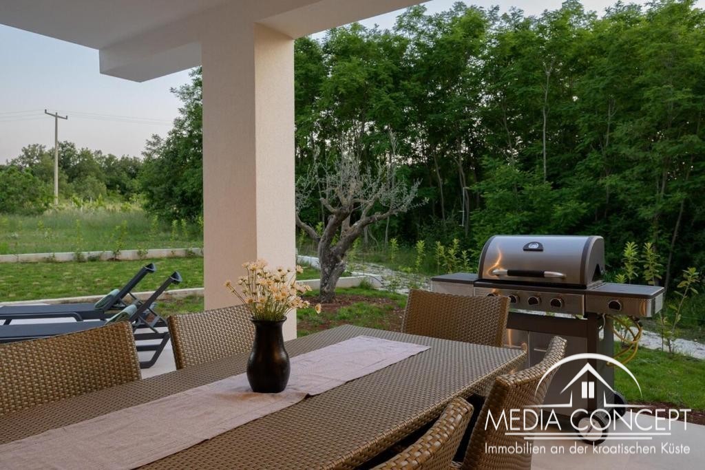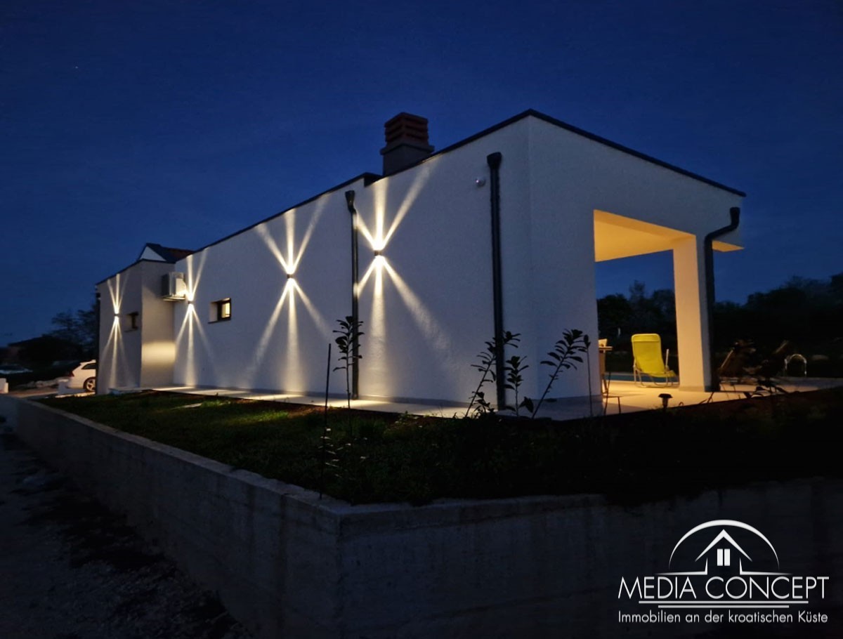 Dieses außergewöhnlich charmante und modern gestaltete Bungalow befindet sich in einem ruhigen, malerischen Dorf, nur 7,5 km von Rovinj entfernt – einer der schönsten Städte Istriens. Am Rande der Bauzone gelegen, in direkter Nachbarschaft zur unberührten Natur, nur 3 km vom Meer entfernt, bietet dieses elegante, ebenerdige Haus eine perfekte Kombination aus Privatsphäre, Komfort und der Nähe zum Meer. Es eignet sich ideal für all jene, die eine persönliche Ruheoase suchen, ebenso wie für Investoren, die eine hochwertige Immobilie mit großem touristischem Potenzial erwerben möchten.