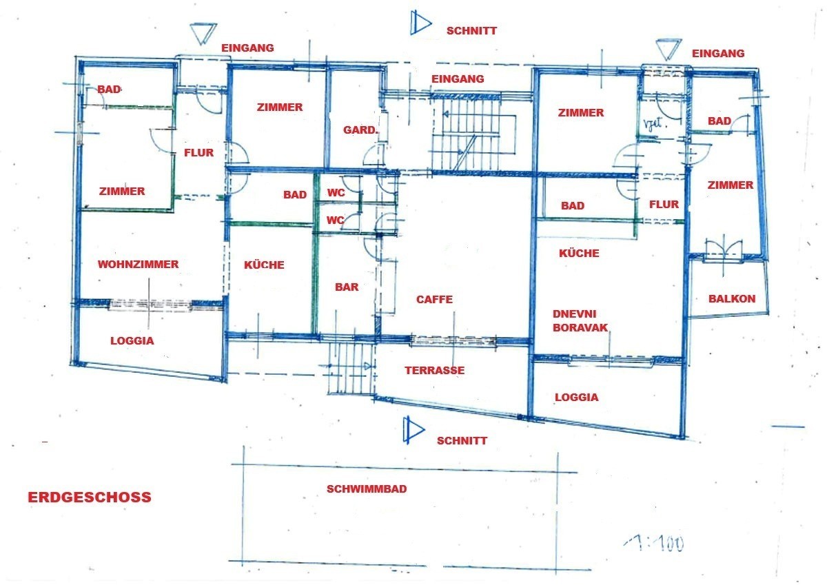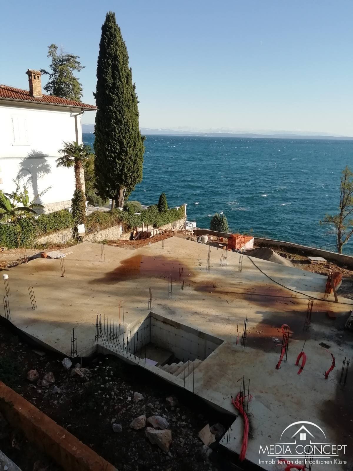 Eine Rarität. Baugrundstück mit Baugenehmigung in der Opatija. Der Bau wurde begonnen und die untere Etage ist bereits erstellt. In Moment ist ein Aparthotel genehmigt, was aber auch geändert werden kann.