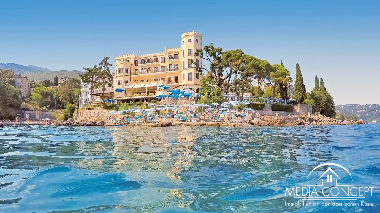 Zum Verkauf steht ein Baugrundstück in ruhiger, von Grün umgebener Lage, in unmittelbarer Nähe des Zentrums von Opatija.