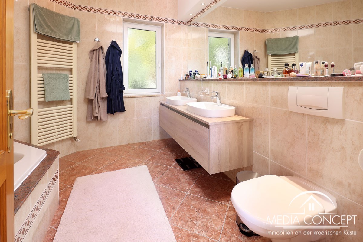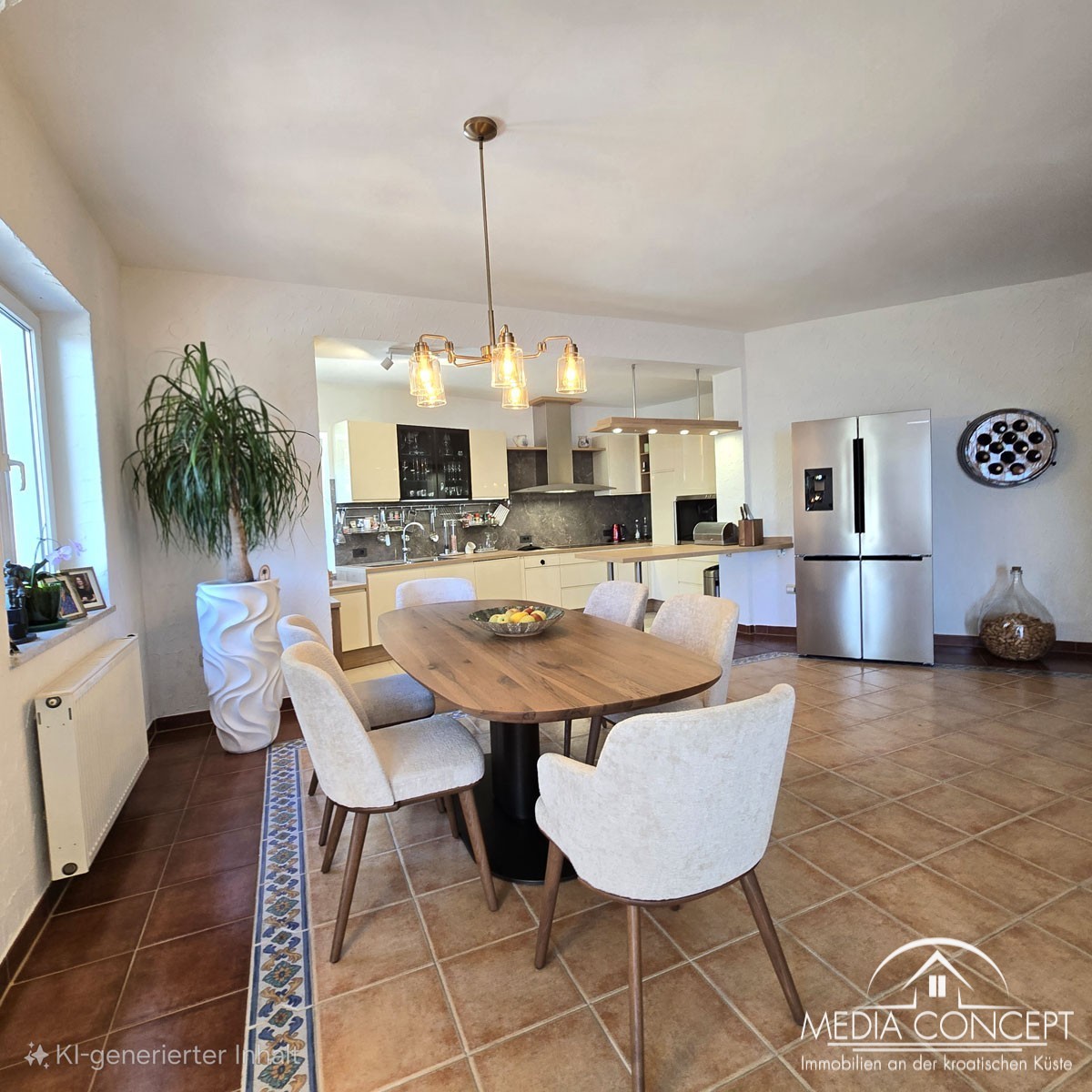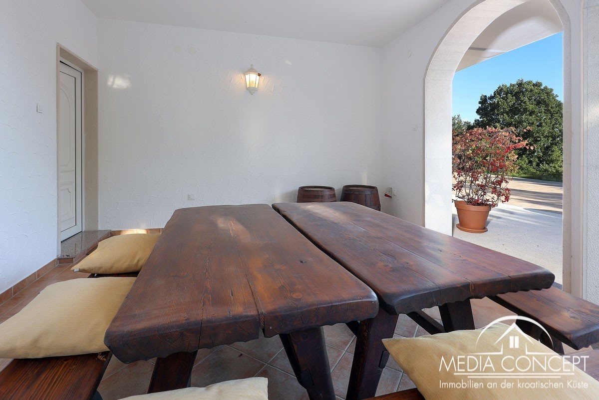 Solarwarmwassergewinnung und noch vielem mehr, wird jegliche Komfort unserer Zeit ergänzt. Carport und Parkplätze befinden sich hinter dem Haus. Gepflegte mediterrane Garten. Vor dem Haus befindet sich Grillplatz mit überdachte Sitzecke wo man mit Familie und Freunden gemütliche Stunden verbringen kann.