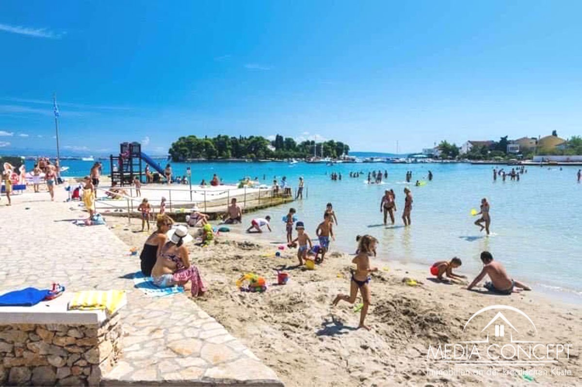 In einem Umkreis von 3–7 Gehminuten befinden sich Sand-, Kies- und Felsstrände, während das Ortszentrum in nur 5 Minuten zu Fuß erreichbar ist.