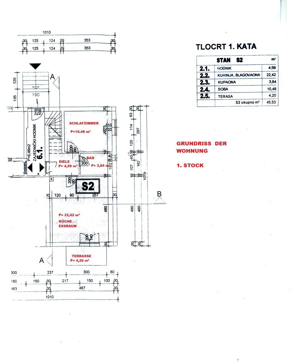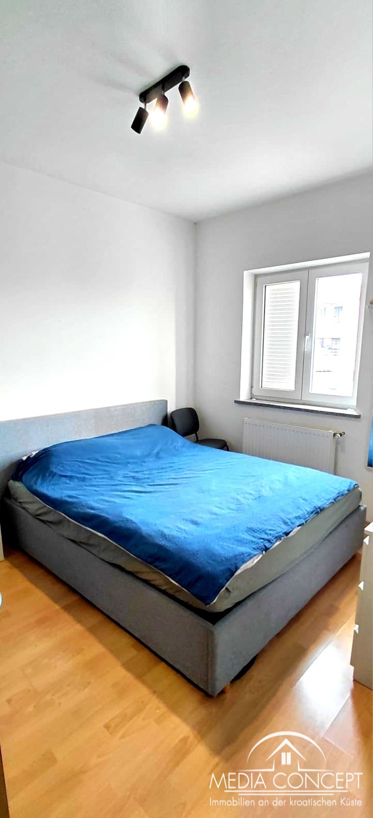 Die Wohnung verfügt über eine offizielle Wohnfläche von 45,53 m². Sie wird möbliert verkauft, mit Ausnahme des Bettes im Schlafzimmer. Die Möbel sind gebraucht und weisen übliche Gebrauchsspuren auf, sind jedoch weiterhin funktionstüchtig.