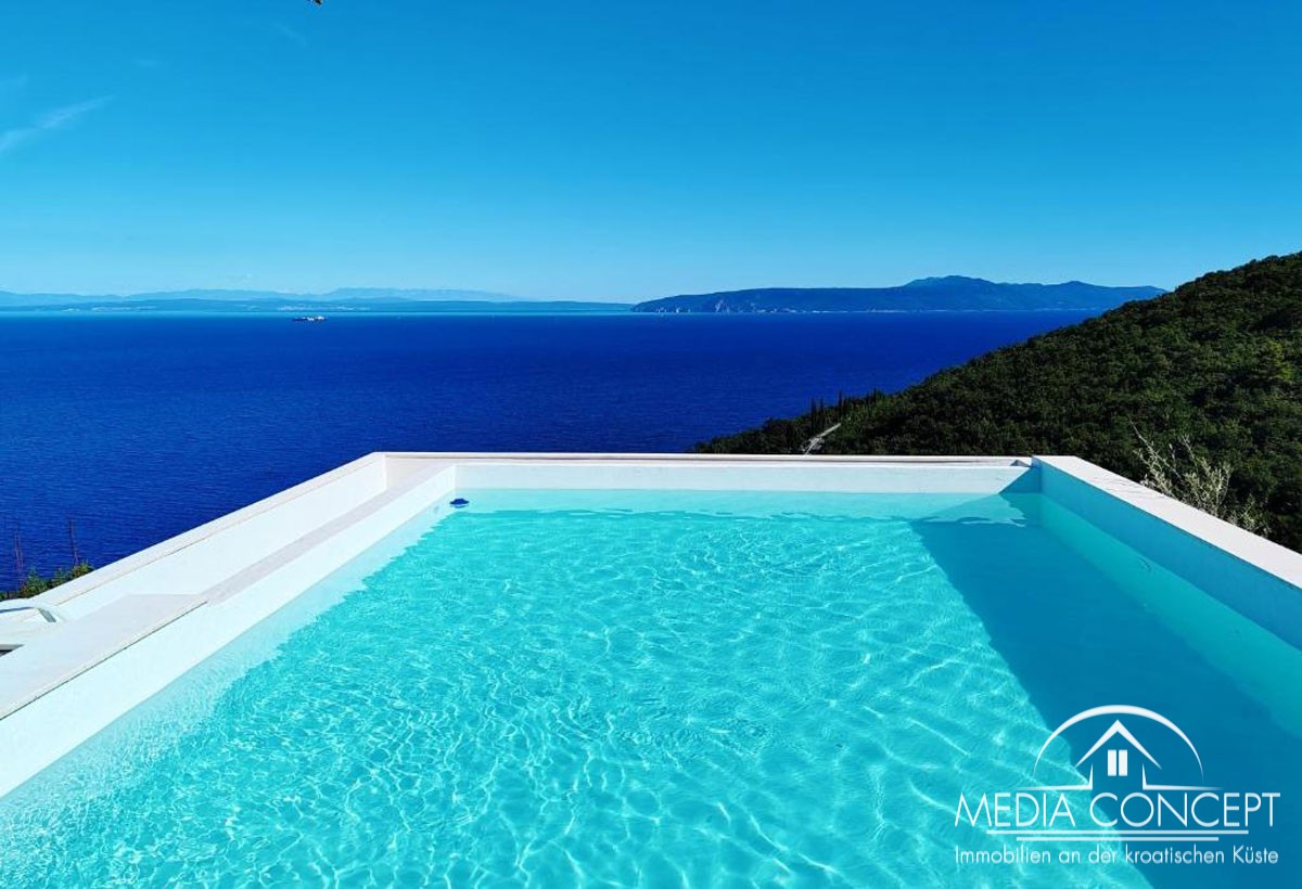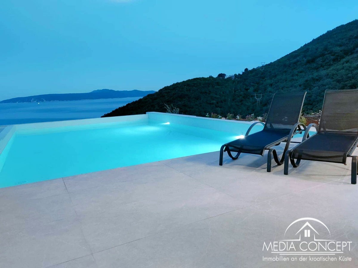 The villa offers breathtaking views of the islands of Krk, Cres, and the entire Kvarner Bay, and offers plenty of privacy in the garden and pool area. The surroundings of the villa are green and surrounded by forests, which are surrounded by Mount Učka, which is located behind the house. The towns of Lovran and Opatija are close to the villa. Opatija is known as the oldest tourist destination and the summer residence of the Austrian emperors. In this sense, the town, with its many parks and castles, recalls this era.
