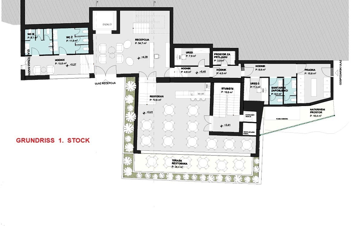 The price for the hotel is in its current condition. Renovation work is not included in the price. A project for this renovation work already exists.