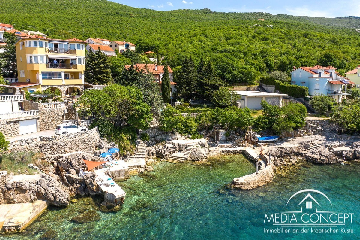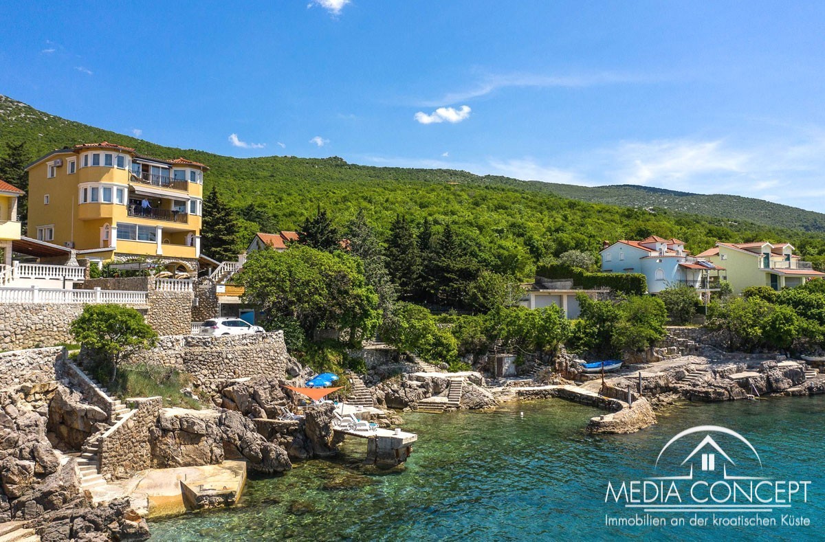 We would like to introduce you to a villa in the first row to the sea and offer for sale. This villa has been constructed on a 890 m2 large plot. In 2000, the two lower floors were built. In 2008, the two upper floors would be increased, and insulated the entire facade and re-plastered. Total living area of the villa is approximately 600 m2. Only 20 steps you need to deal with to get to the beach. There waiting for you beach chairs and umbrellas. In addition, there is a bar with two buoys.