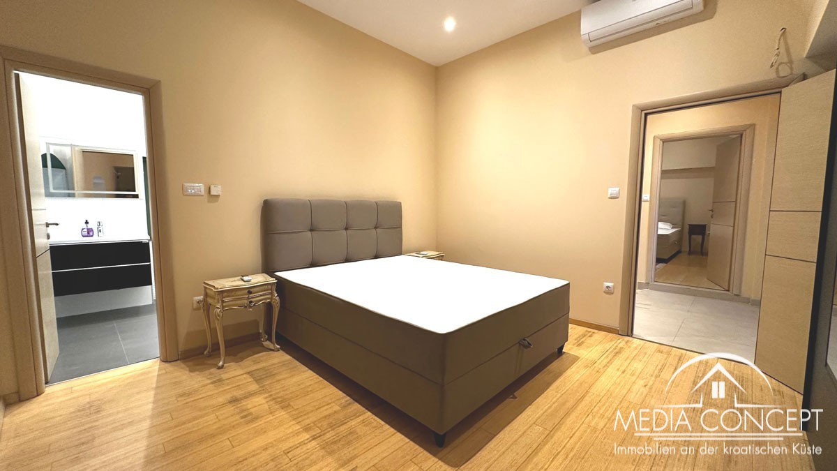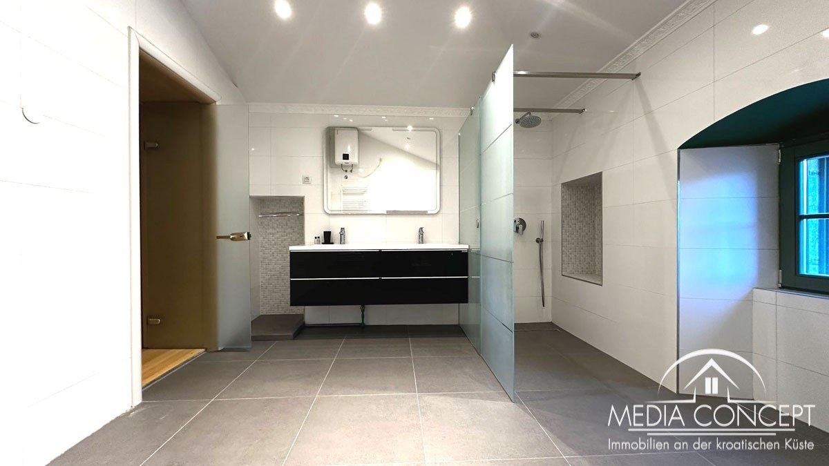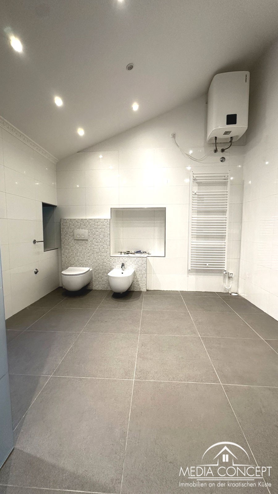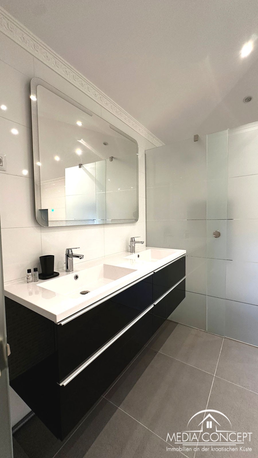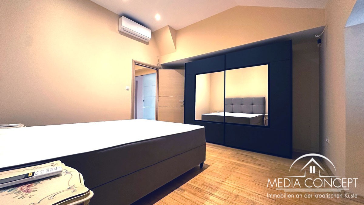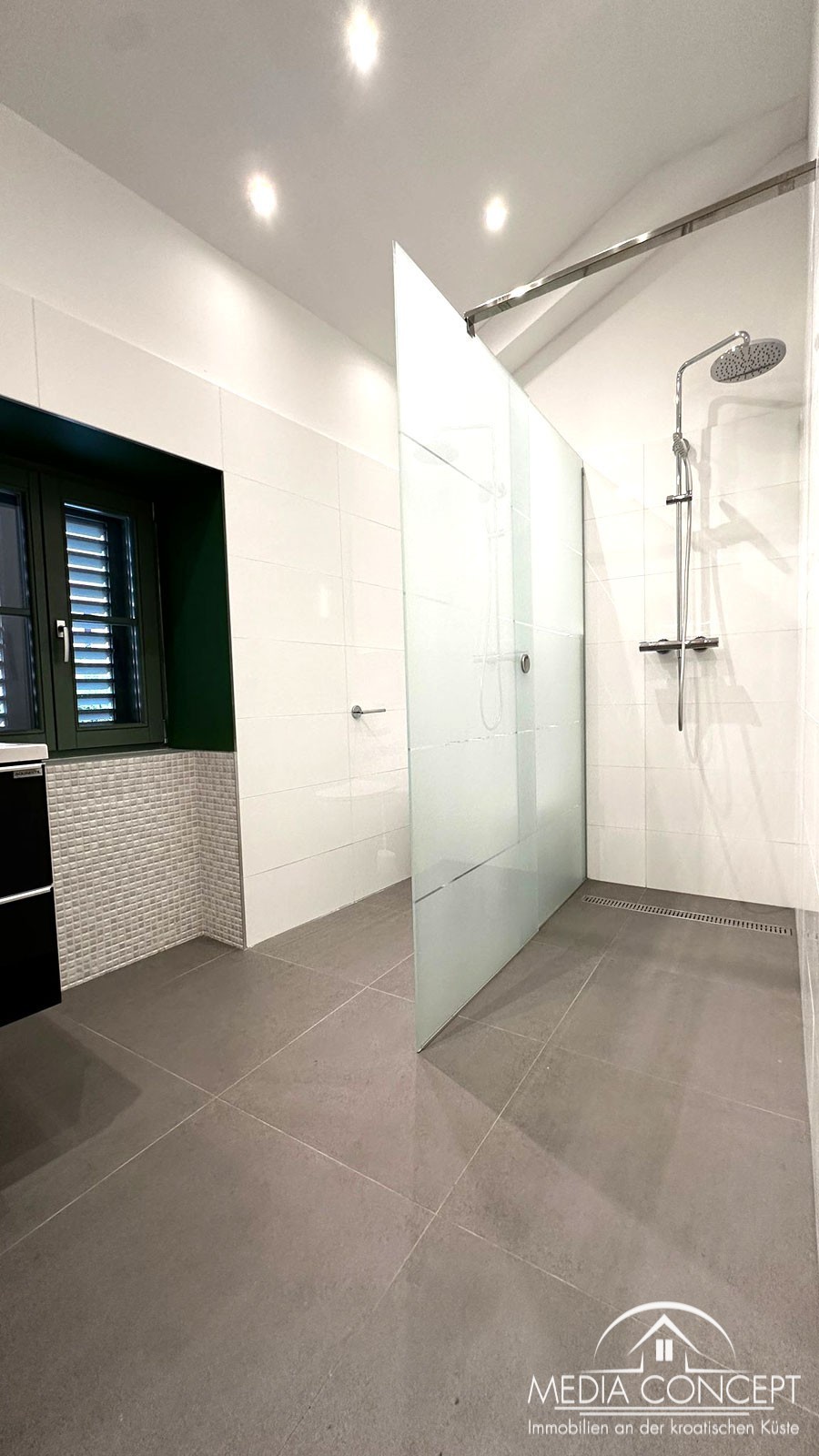 In the basement is a law firm. Upper two floors, which we would like to offer this form, an apartment with a total of approximately 180 m2. This apartment has its own entrance. In the ground floor hall, kitchen with dining area and a storage room. On the floor in any case, there is a nearly 70 m2 large living room with fireplace. From the living room you enter the balcony, from the offers a beautiful sea view. Also located on the first floor, two bedrooms, two bathrooms and a guest WC. Renovations are almost complete. From the outside, the house has been completely renovated: new roof, new wood windows, facade. Inside, the new installations made, ceilings, roof insulation, the floor is bamboo flooring has been laid. Heating - Air. In addition to ground floor is laid. An extraordinary house with a special atmosphere. Parking. No matter what you need, you can reach it in a few steps: shops, post office, bank, pharmacy, cafes, restaurants, everything. That lost the little! Sandy beach is 100 meters away.