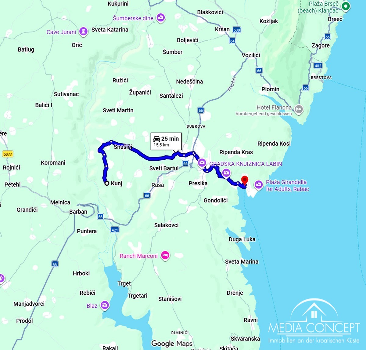 The plot is located in an excellent location, only 5 km from Labin and 10 km from Rabac, i.e. the sea.