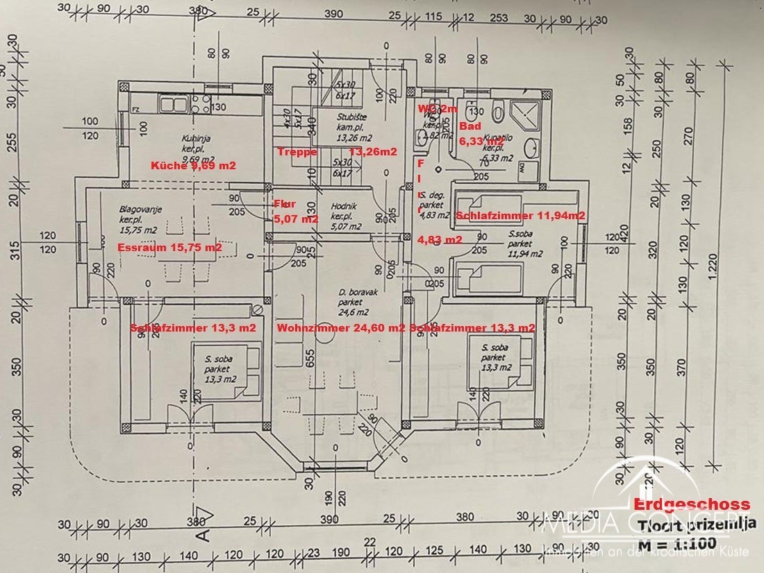 Prostrano prizemlje (120 m²) s trosobnim stanom i velikim boravkom