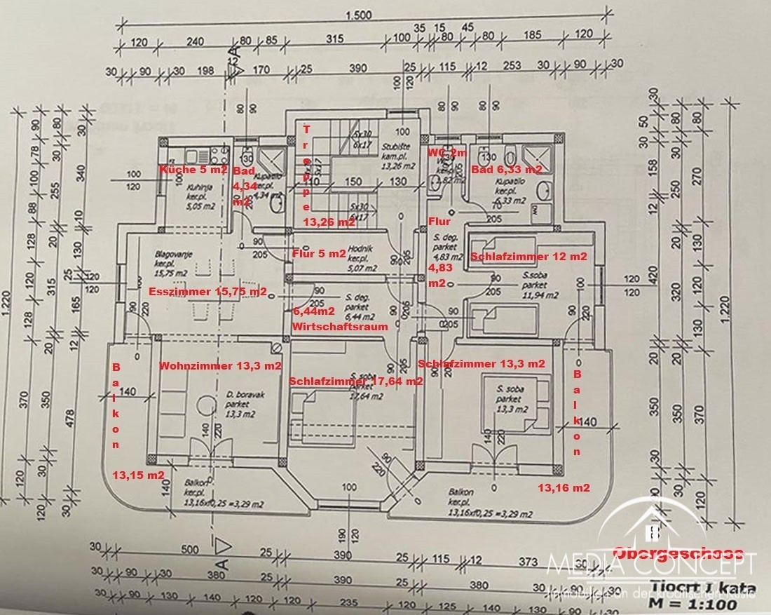 Prvi kat (125 m²) s identičnom, izuzetno funkcionalnom stambenom jedinicom