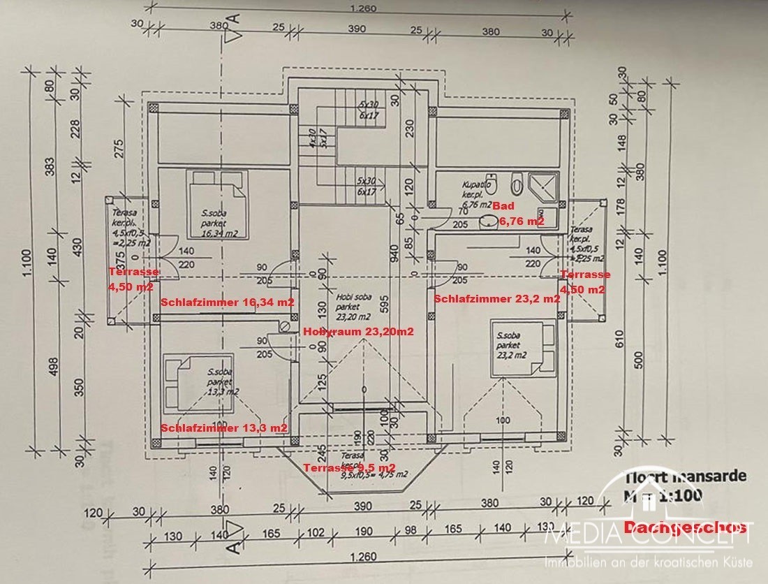 Mansarda (92 m²) s tri spavaće sobe, dodatnim prostorom za druženje te čak tri terase s predivnim pogledom